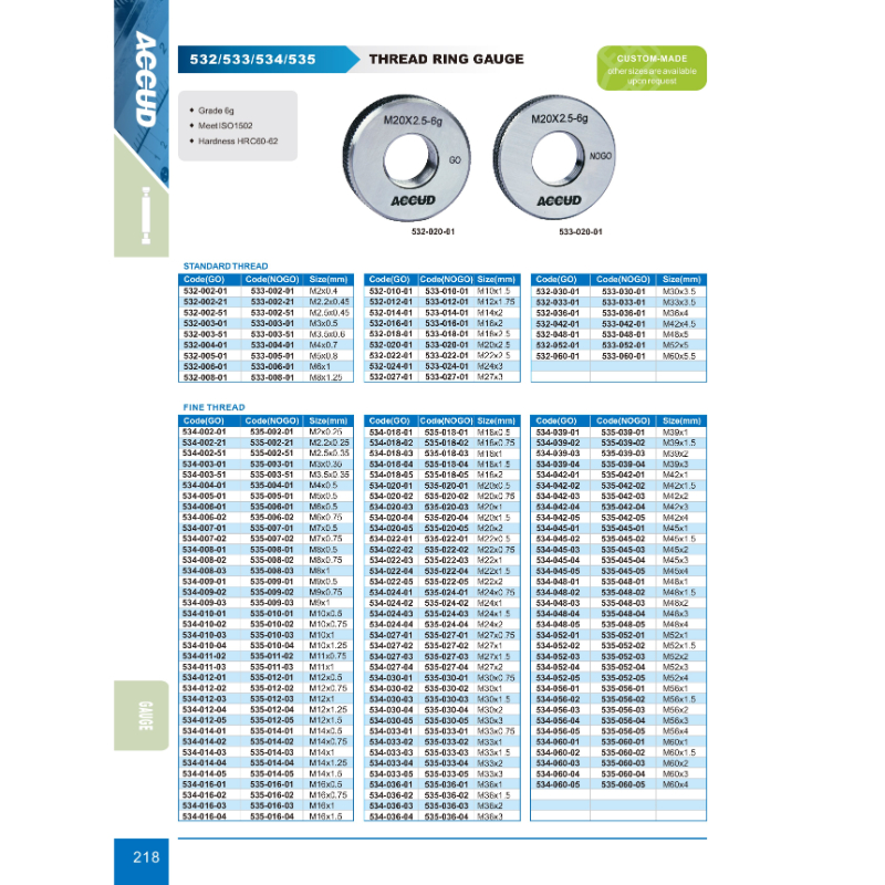 ACCUD THREAD RING GAUGE (GO) FINE